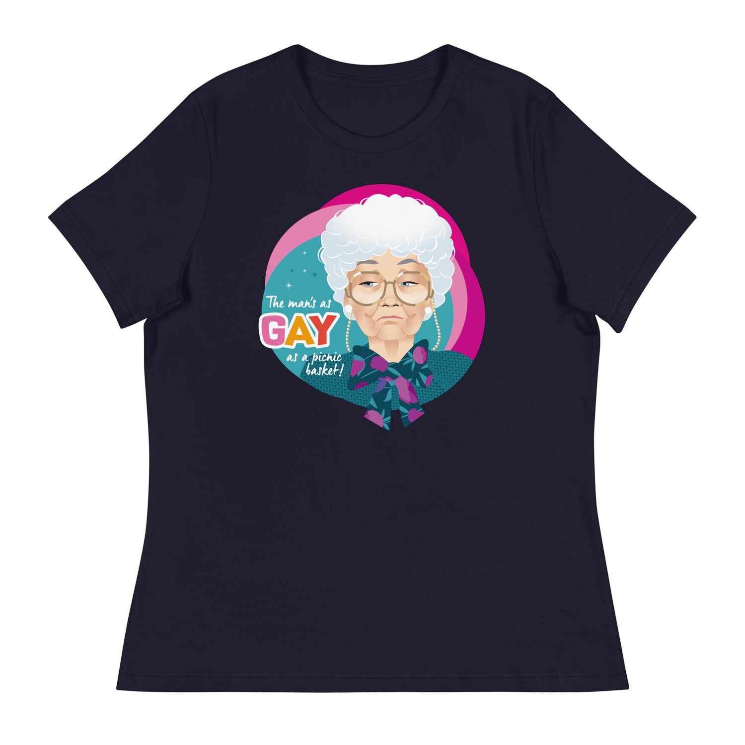 Gay as a Picnic Basket (Women's Relaxed T-Shirt) - Navy / S is backordered and will ship as soon as it is back in stock.